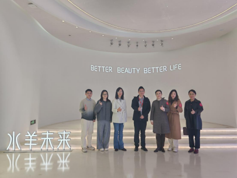 水羊集团股份有限公司人力资源经理陈九奎对学院一行的到访表示热烈欢迎。他详细介绍了企业发展情况,并重点围绕企业的人才观进行了分享。随后,学院教师团队在水羊集团相关负责人的陪同下,对企业进行了实地走访。通过参观企业展厅与工作环境,团队深入了解了水羊集团的发展历程、企业文化、品牌矩阵与核心产品,为后续的座谈交流奠定了直观、扎实的基础。